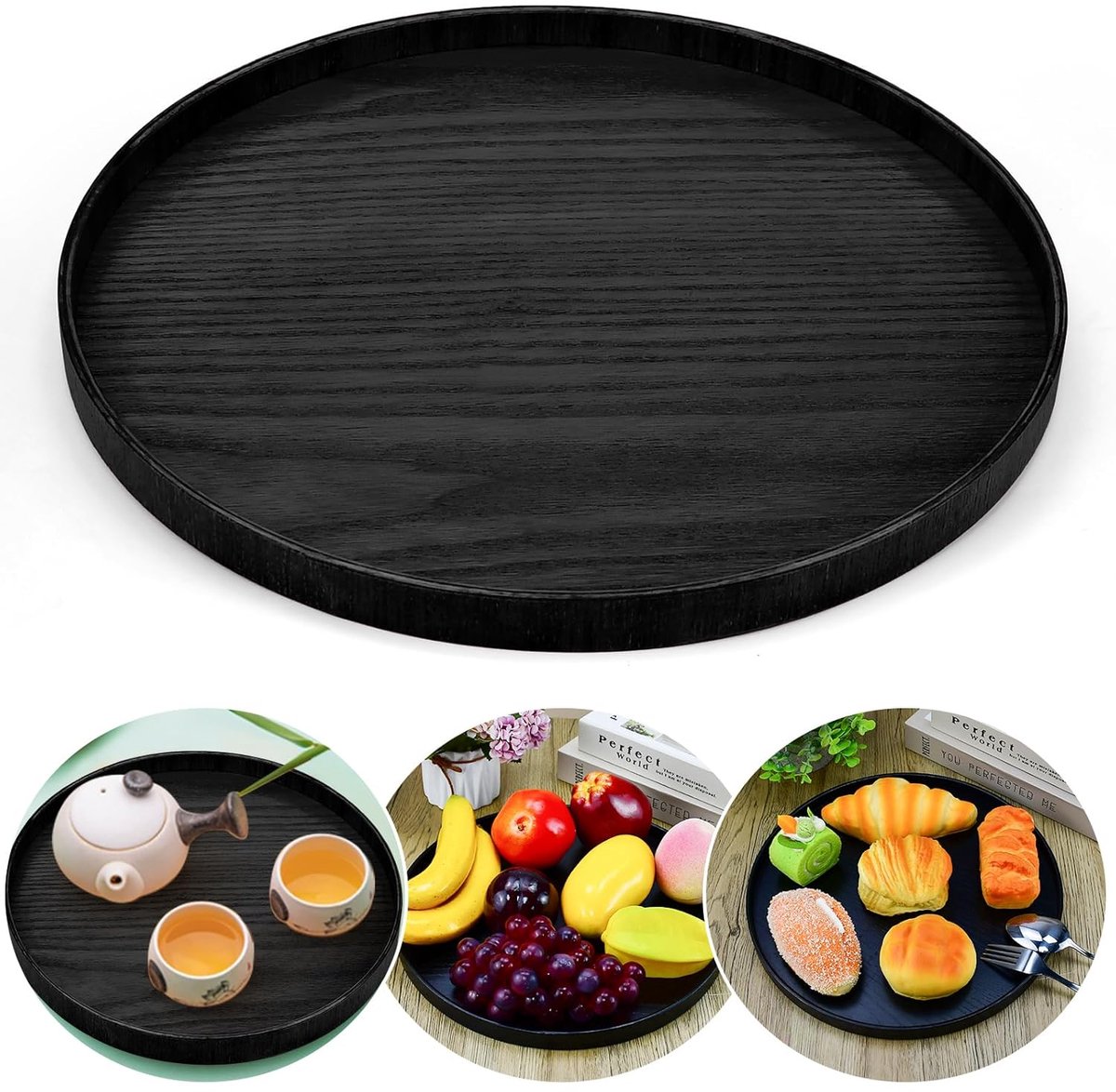 TRANKIELO® – Rond Dienblad 30 cm – Decoratief Bamboe Dienblad – Eetdienblad in Zwart – Dienblad voor Dranken, Koffie, Afstandsbedieningen, Sleutels, Sieraden en Cosmetica