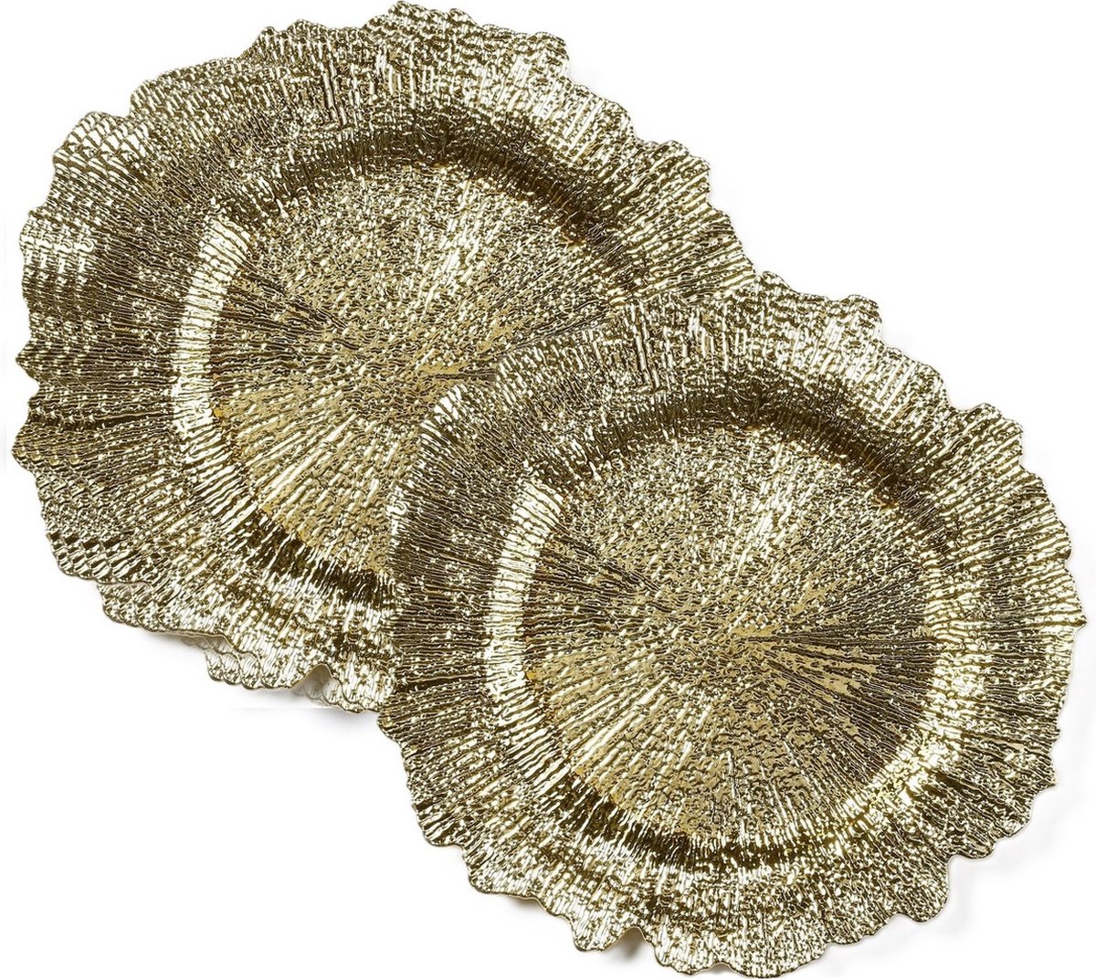 6x stuks rond diner onderborden in de kleur goud. Maak je tafelsetting compleet en stijlvol met deze diner-/kerstdiner onderborden. Deze set van 6x stuks onderborden biedt niet alleen een elegantie uitstraling, maar ook praktische voordelen voor elke feestelijke gelegenheid. Het klassieke design zorgen voor een chique en feestelijke sfeer, waardoor je tafelsetting een vleugje luxe krijgt. Met een diameter van 33 cm zijn ze ideaal voor het presenteren van je servies en passen ze bij elke tafelschikking. Gemaakt van kunststof, zijn deze onderborden eenvoudig schoon te maken. Bovendien biedt het bord een functionele bescherming voor je tafel tegen morsen. Of je nu een feestelijk diner plant voor kerst, een verjaardag viert, of gewoon je dagelijkse maaltijden wat eleganter wilt maken, deze onderborden zijn hier perfect voor.