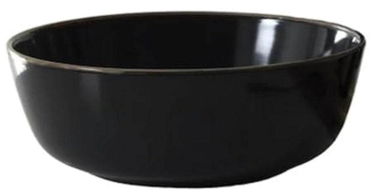 Verbeter de presentatie van uw gerechten en tafels met deze stijlvolle saladeschaal met gouden rand! Deze zwarte saladeschaal is praktisch en geschikt voor dagelijks gebruik. De inhoud is perfect voor uw salades of smaakvolle soepen. Het past zowel op eenvoudige als op luxe gedekte tafels!