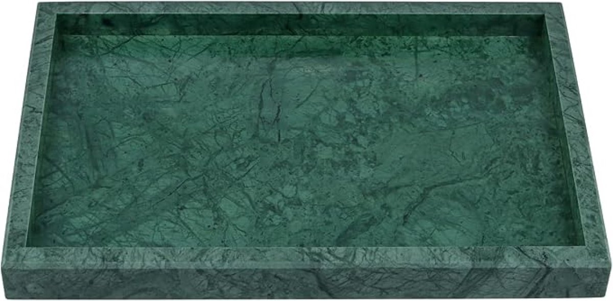 Groen marmeren serveerplank met antislip onderkant, rechthoekig dienblad voor badkamer en make-up