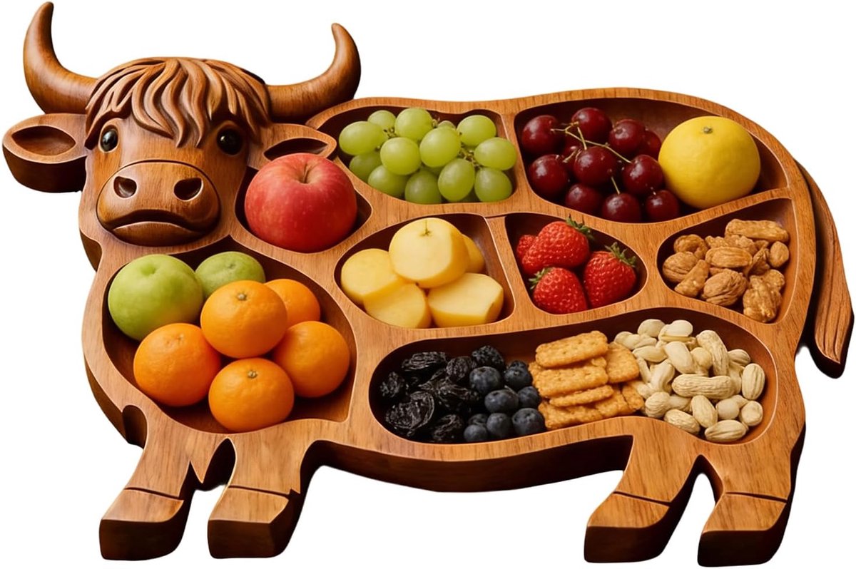 Ontdek de perfecte manier om uw gasten te imponeren met deze unieke houten serveerplank, speciaal ontworpen om uw culinaire creaties te presenteren. Herkent u het probleem dat uw feestjes altijd een beetje rommelig aanvoelen door losse schaaltjes en borden? Zoekt u naar een elegante oplossing om al uw hapjes, kazen, vleeswaren en fruit op een overzichtelijke en aantrekkelijke manier te presenteren? Het organiseren van een geslaagd feestje kan een uitdaging zijn, vooral als het gaat om de presentatie van het eten. Een opgeruimd en stijlvol buffet draagt bij aan de algehele sfeer en laat zien dat u oog heeft voor detail. Deze prachtige serveerplank, vormgegeven als een charmante koe, biedt de ideale oplossing. Dankzij het slimme ontwerp met meerdere compartimenten kunt u al uw lekkernijen gescheiden en georganiseerd houden. Gebruik het voor een uitgebreide kaasplank, een selectie van charcuterie, een kleurrijk fruitbuffet of een combinatie van diverse borrelhapjes. De plank is niet alleen perfect voor speciale gelegenheden zoals verjaardagen, Kerstmis, bruiloften en housewarmings, maar ook een aanwinst voor uw dagelijkse keuken of eettafel. Of u nu gasten ontvangt in uw gezellige huis, een appartement met een landelijke sfeer inricht, of gewoon wilt genieten van een ontspannen avond met vrienden, deze veelzijdige plank verbetert elke setting. Het duurzame hout zorgt voor betrouwbaar gebruik en voegt een natuurlijke warmte toe aan uw tafel. Stelt u zich eens voor hoe uw gasten zullen genieten van de moeiteloze elegantie waarmee u uw hapjes presenteert. Deze serveerplank brengt niet alleen orde op uw tafel, maar zorgt ook voor een verhoogd eetplezier. Het gemak van alles bij de hand hebben, de visuele aantrekkingskracht van een prachtig opgemaakte plank, en de waardering van uw gasten voor uw gastvrijheid, dat is wat u ervaart. Het is een investering in gezelligheid en onvergetelijke momenten met uw dierbaren. Het is een attent cadeau voor ouders, vrienden of als een praktische en stijlvolle toevoeging aan uw eigen keukenbenodigdheden. Het unieke aspect van deze serveerplank is ongetwijfeld het charmante koeienontwerp, gecombineerd met een functionele indeling in compartimenten. Dit onderscheidt het van standaard serveerschalen en voegt een speels en decoratief element toe aan uw presentatie. Het hittebestendige materiaal garandeert dat u de plank met vertrouwen kunt gebruiken voor diverse etenswaren, zonder zorgen over beschadiging of verkleuring. Maak van uw volgende bijeenkomst een culinair succes en bestel deze unieke houten serveerplank vandaag nog. Creëer een sfeervolle en georganiseerde presentatie die uw gasten zal verrassen en uw hostingervaring naar een hoger niveau tilt.