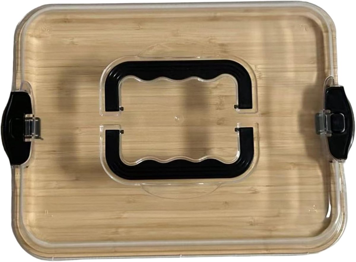 Houten Serveerplank – Kaasplank Dienblad – Picknick en Camping – Afsluitbaar Doorzichtig Deksel – 35.56×27.94cm – Kaki