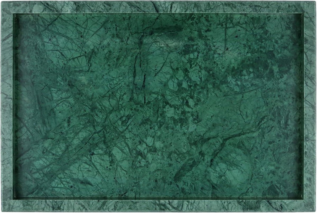 Natuurlijk marmeren dienblad 30 x 20 x 3 cm groen rechthoekig serveerplank organizer vanity plank make-uptafel badkamerdecoratie - Kookstore.nl