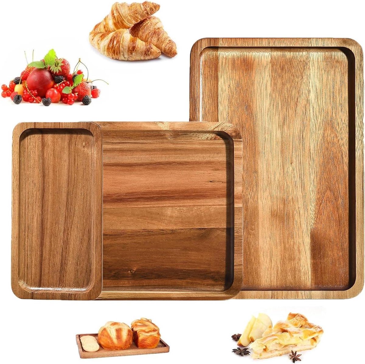 Home Servies Serveren Serveerplanken Set van 3 rechthoekige houten dienbladen – decoratie serveerplank ontbijt cake – 30 x 20 20 x 20 20 x 10 cm
