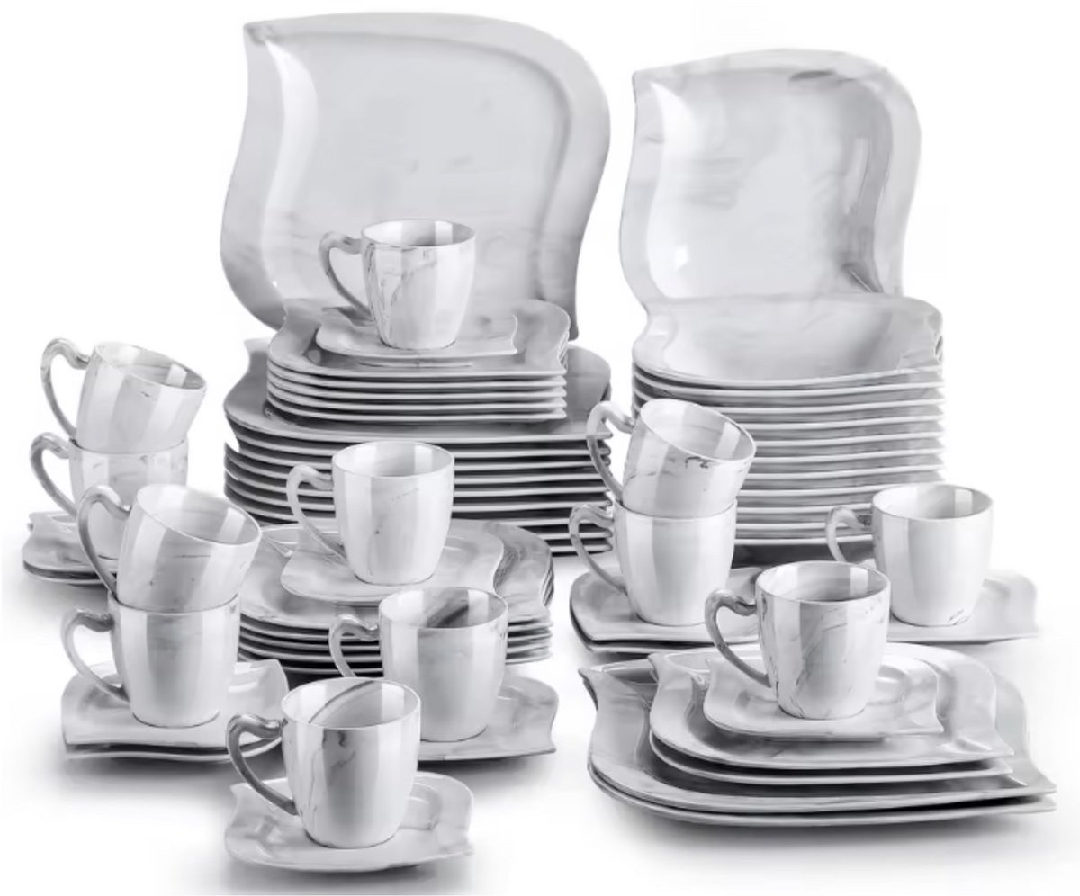 Château Ontbijtborden – Dinerborden – 12 persoons – 60 delig – Marmerlook Keramisch – Kleine Borden
