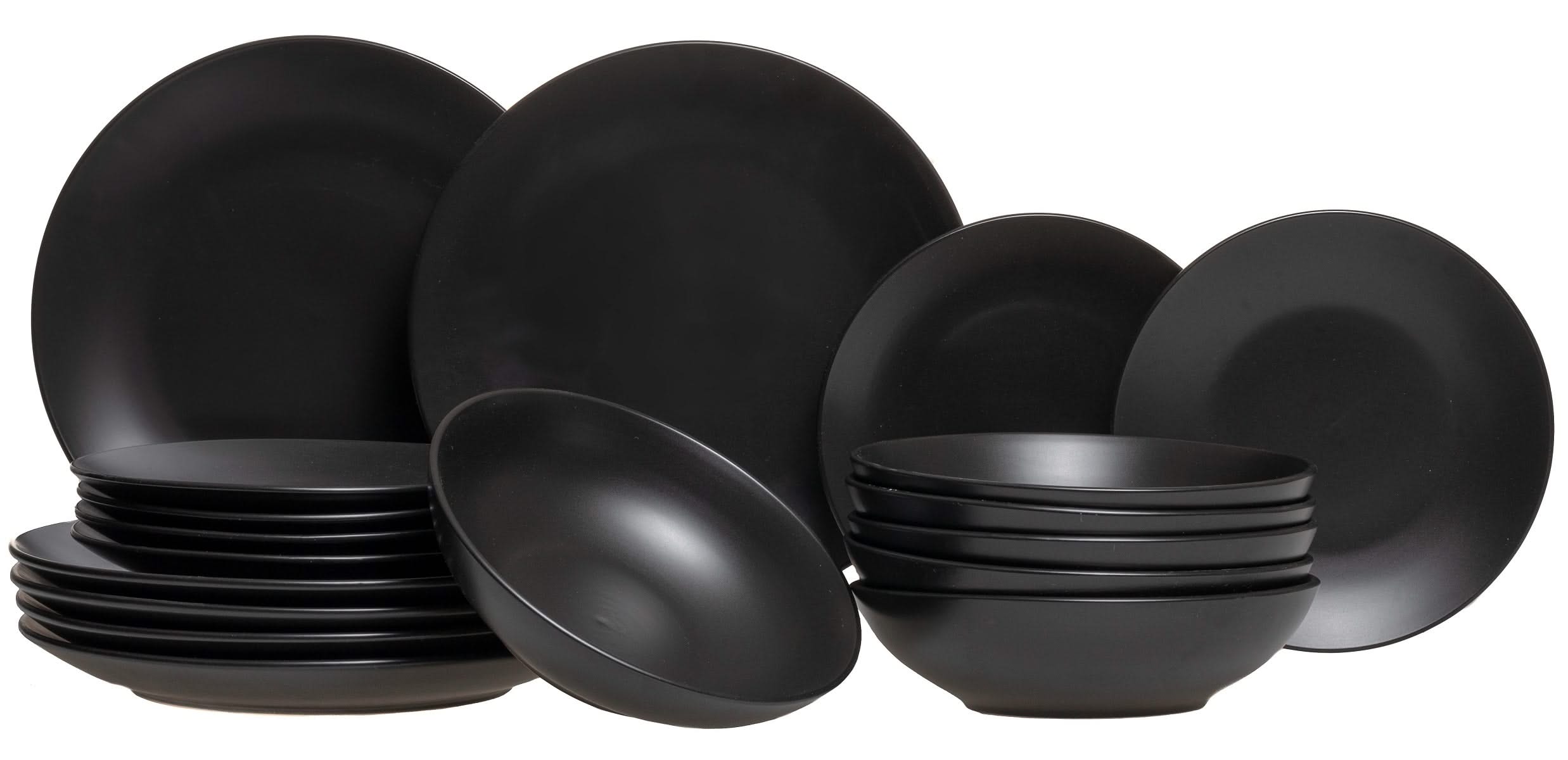 Studio Tavola Serviesset Black Tie 18-delig / 6 personen – 6 ontbijt/dessertborden, 6 diepe borden en 6 dinerborden
