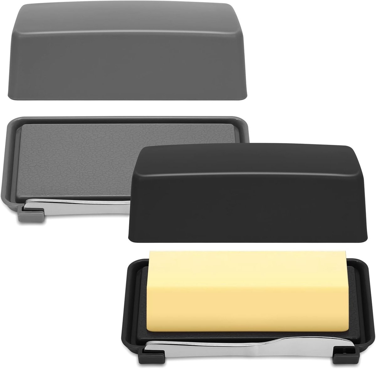 2-Pack Premium Waarde: Dubbel Comfort, Dubbel Plezier Ontdek de perfecte oplossing voor al je boterbehoeften met onze set van twee elegante botervlooten met deksel en messen. Deze premium botervlooten zijn ontworpen om je werkblad en koelkast te verfraaien, terwijl ze tegelijkertijd zorgen voor een optimale bewaring van je boter. Met deze set maak je het vervelende overgieten van boter tussen containers overbodig en geniet je van dagelijks gebruik met langdurige versheid.