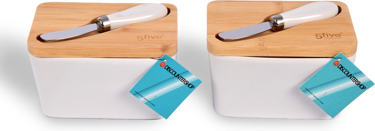 – Verpakkingsinhoud: 2x Botervloot Keramiek 2x luchtdichte deksel (bamboe) 2x botermes (RVS)