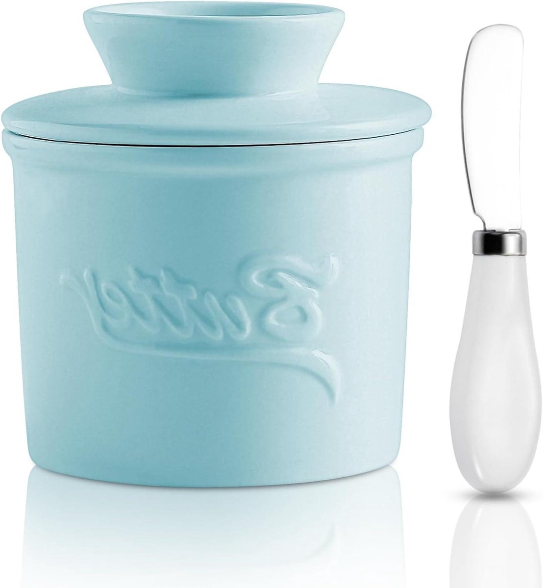 Keramieken botervloot met deksel en botermes – porseleinen botervat – boterbox voor smeerbare boter