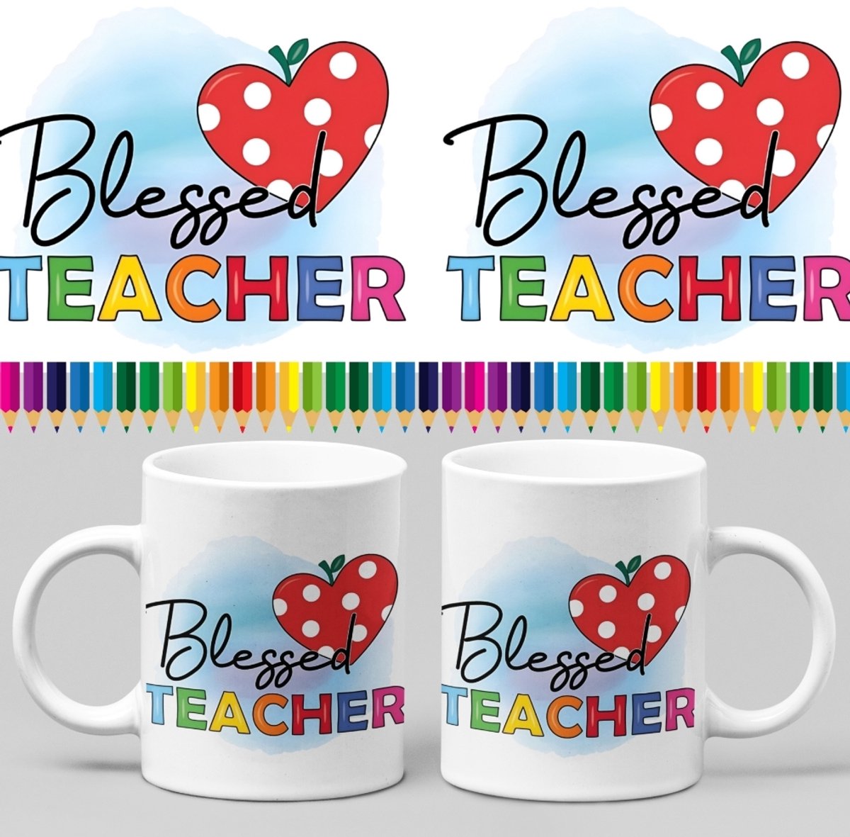 Mok voor juf – Blessed teacher – Wurban Wear | Keramiek | 325 ml (11oz) | Juf cadeau | Koffiemok | Drink mok | Leuke mok | Theemok | Juf mok | Afscheidscadeau voor juf | Vaatwasser & magnetronbestendig | Cadeau voor juf | Wit
