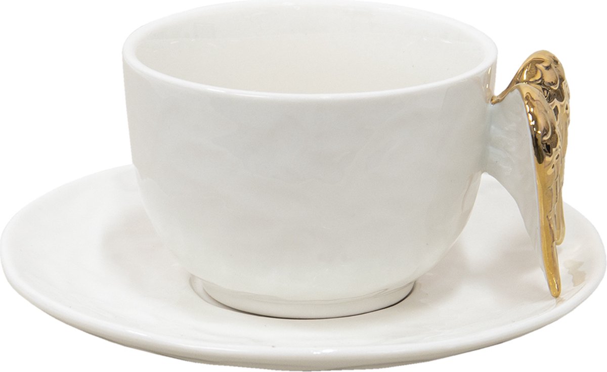 Clayre & Eef Kop en schotel 175 ml Wit Keramiek Vleugels Servies