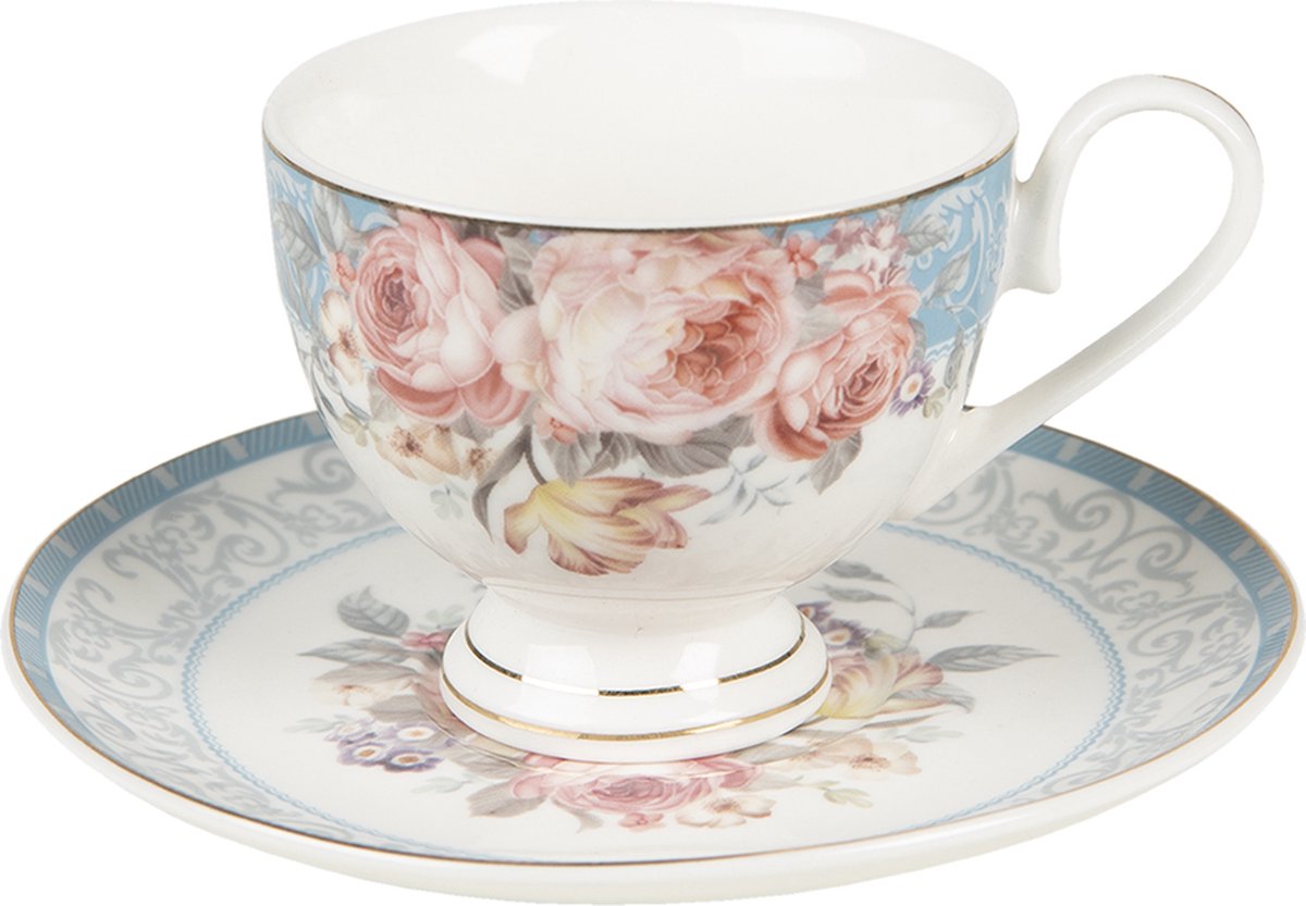 Klassieke kop en schotel met bloemen van het merk Clayre & Eef 11x8x7 cm / Ø 15×2 cm