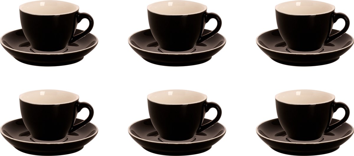 Palmer – Colors – Cappuccino kop en schotel – 6 stuks – 18 cl – Zwart – Porselein – Koffiekopjes