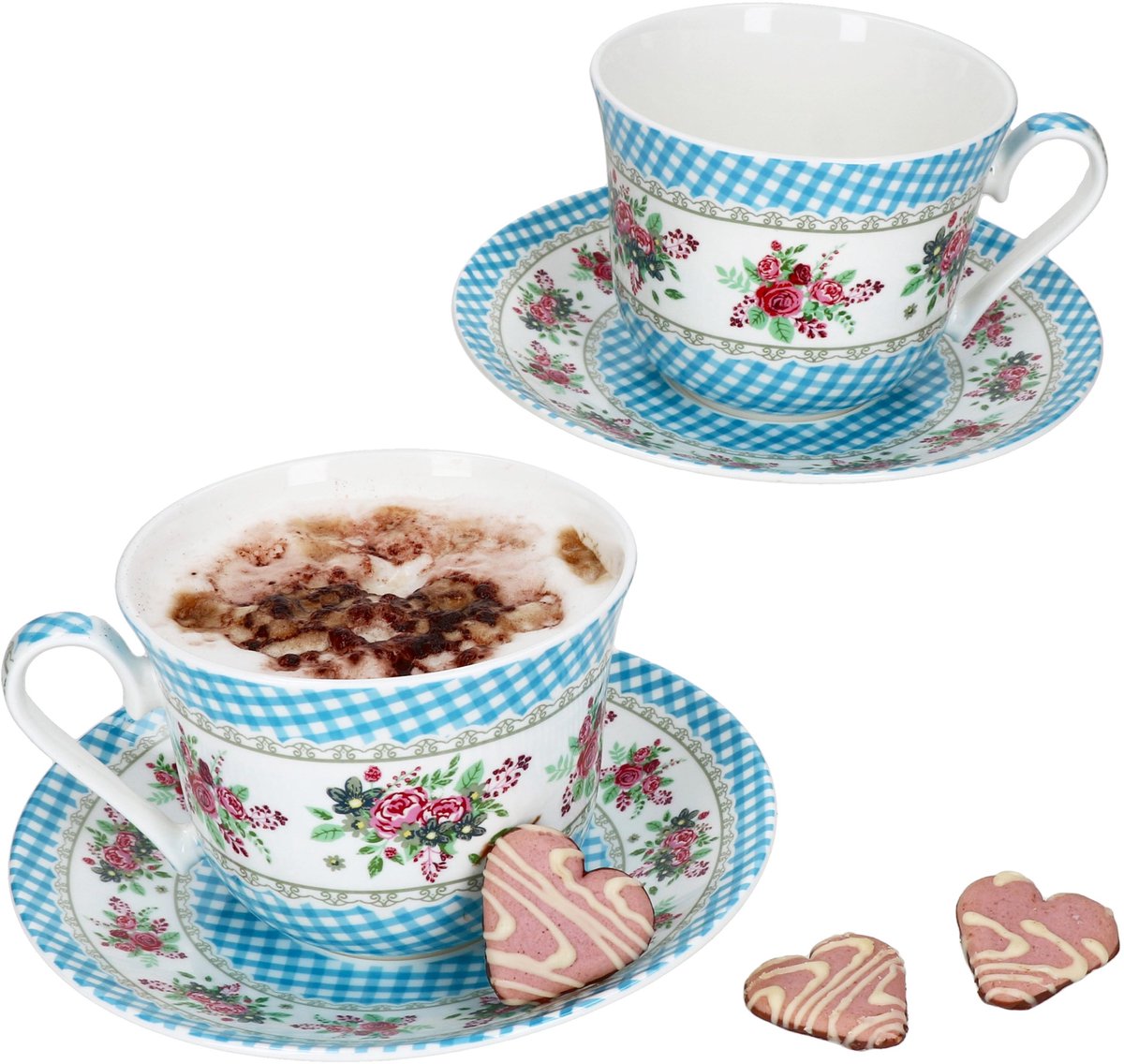 Deze prachtige gebloemde set bestaat uit twee jumbo koppen met bijpassende schotels. Deze klassieke serie heet BLUES BLUE chequered en maakt indruk met zijn ongebruikelijke ontwerp. Het kan zowel thuis als in de horeca worden gebruikt en is een geweldig cadeau-idee voor koffie- en theeliefhebbers.