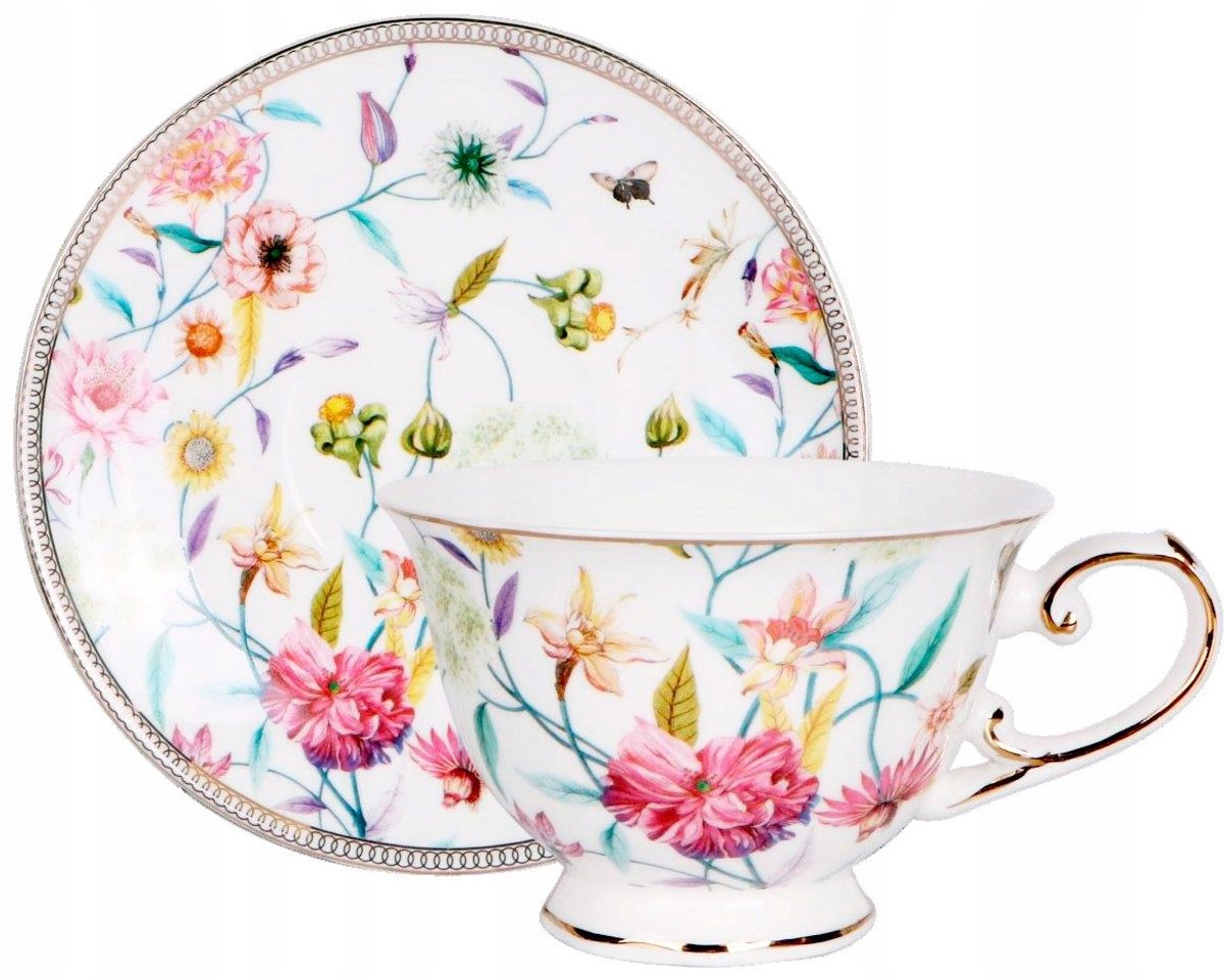 Verfraai uw theemoment met deze elegante Veroni Felicita porseleinen kop en schotel set. Met een royale inhoud van 220 ml en versierd met levendige bloemenmotieven en subtiele gouden accenten, straalt deze set romantiek en stijl uit. De kop en schotel zijn vervaardigd uit hoogwaardig New Bone China porselein, bekend om zijn lichtheid en glans. Het verfijnde ontwerp, inclusief de golvende vorm van de schotel, maakt dit een ware blikvanger. Perfect als geschenk, de set wordt geleverd in een decoratieve verpakking.