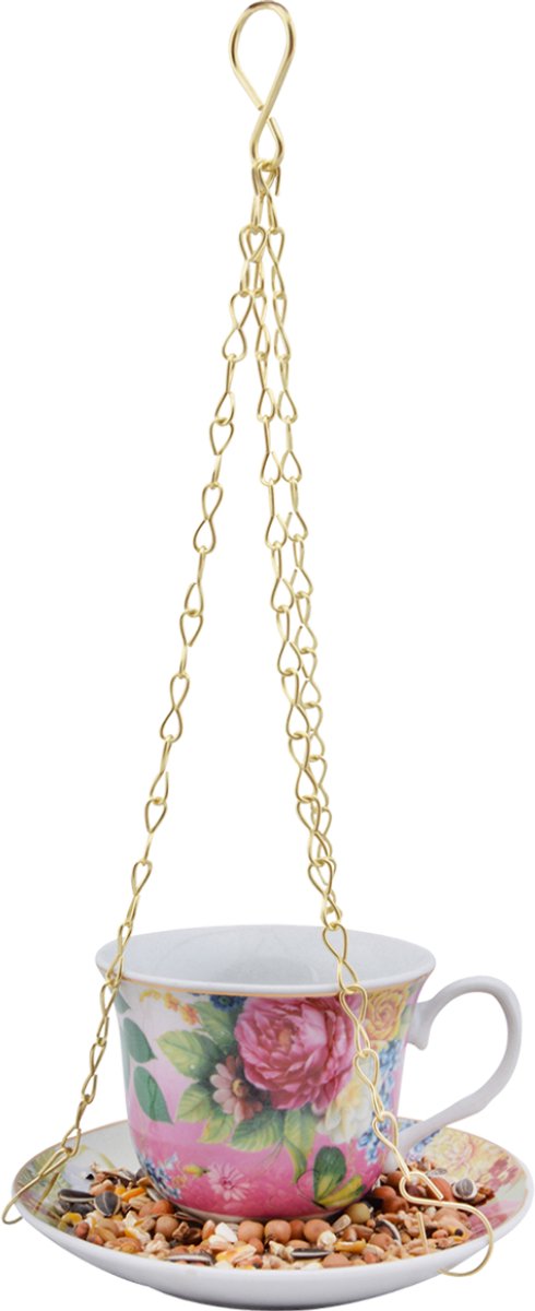 Een charmante blikvanger De vogelvoederhouder kop en schotel is niet zomaar een voederplek, maar een echte eyecatcher. Het elegante ontwerp – een kopje met bijpassende schotel – geeft je tuin of balkon een sfeervol accent. Hang de houder eenvoudig aan een boomtak, haak of pergola en geniet van het vrolijke gefladder van meesjes, mussen en roodborstjes die hun buikje vol eten.