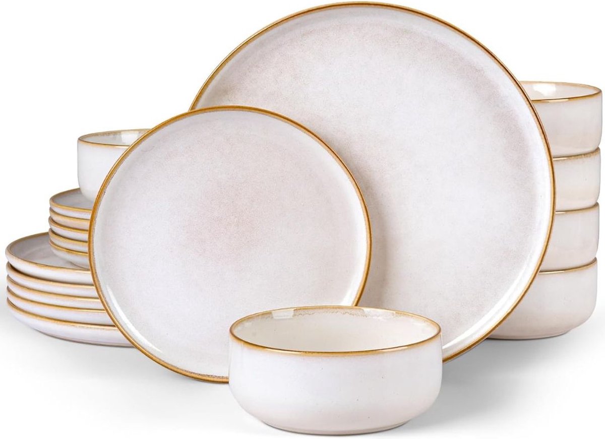 Premium kwaliteit: Gemaakt van stevig aardewerk, dit servies is roestbestendig, duurzaam, en bestand tegen dagelijks gebruik. De reactieve glazuur maakt elk stuk uniek, terwijl het bestand is tegen krassen van bestek.