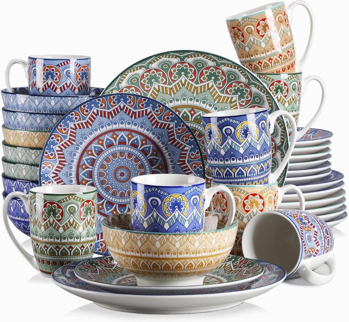Serviesset 8 Persoons Mandala – Creëer een Vrolijke Tafelsfeer met Boheemse Stijl