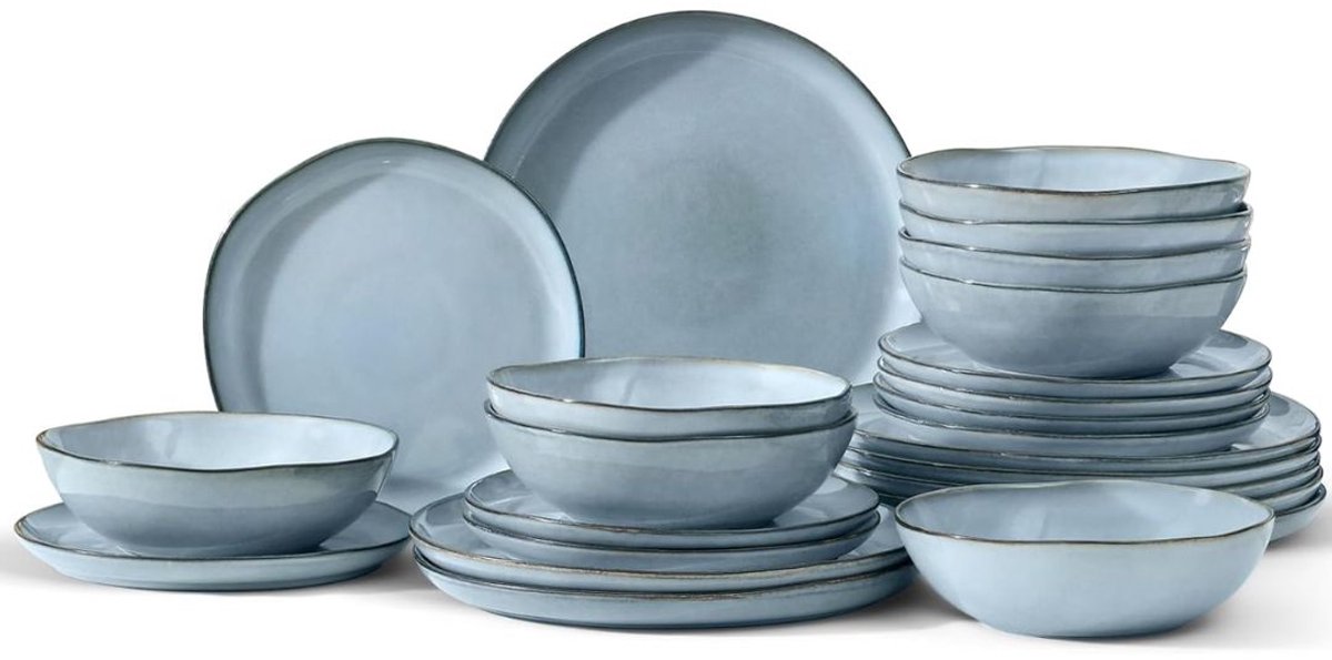 Wanneer je merkt dat je huidige servies dof, saai of beschadigd is, kan elke maaltijd al snel zijn charme verliezen – vooral wanneer je gasten ontvangt en je tafel er allesbehalve stijlvol uitziet. Met de Serviesset 8 Persoons haal je een prachtige, elegante en volledig unieke serviesset in huis die elke gedekte tafel omtovert tot een sfeervol en harmonieus geheel. Deze luxe 24-delige aardewerk set maakt gebruik van een bijzonder dubbel glazuurproces, waardoor een reactieve mistige blauwe kleur ontstaat die per stuk net iets anders is, met subtiele schakeringen en een opvallende onregelmatige rand. Hierdoor straalt het servies eenvoud, zachtheid en pure elegantie uit – de perfecte mix van design en functionaliteit waarmee elke maaltijd voelt als een speciaal moment.