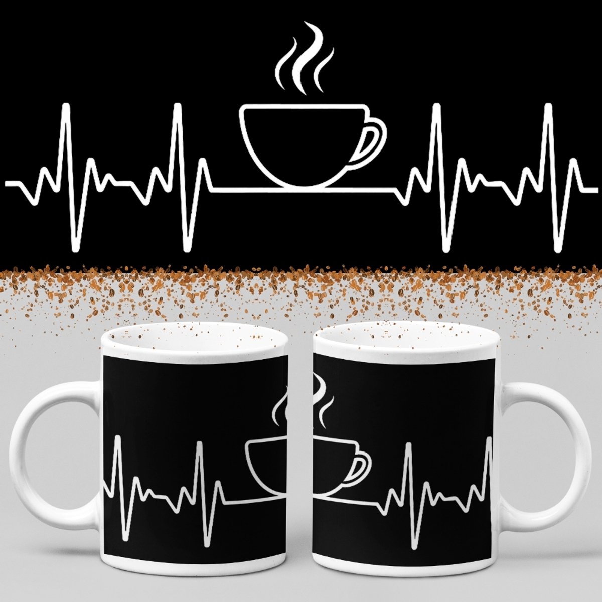 Koffiemok – Koffie hartslag – Wurban Wear | Keramiek | 325 ml (11oz) | Grappige mok | Leuk cadeau | Koffie mok | Drink mok | Leuke mok | Theemok | Foute mok | Fout cadeau | Vaatwasser & magnetronbestendig | Wit