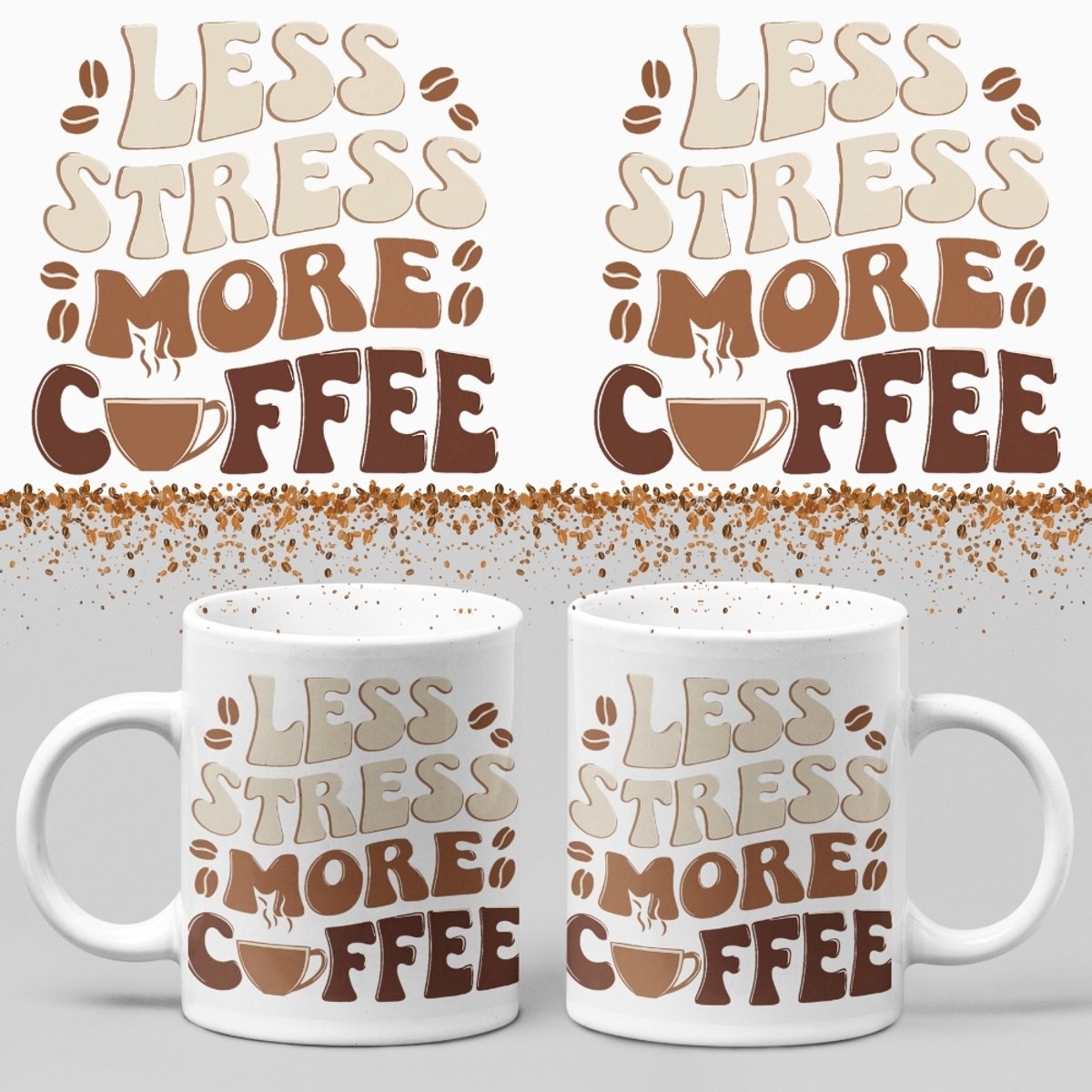 Koffiemok – Less stress more coffee – Wurban Wear | Keramiek | 325 ml (11oz) | Grappige mok | Leuk cadeau | Koffie mok | Drink mok | Leuke mok | Theemok | Foute mok | Fout cadeau | Vaatwasser & magnetronbestendig | Wit